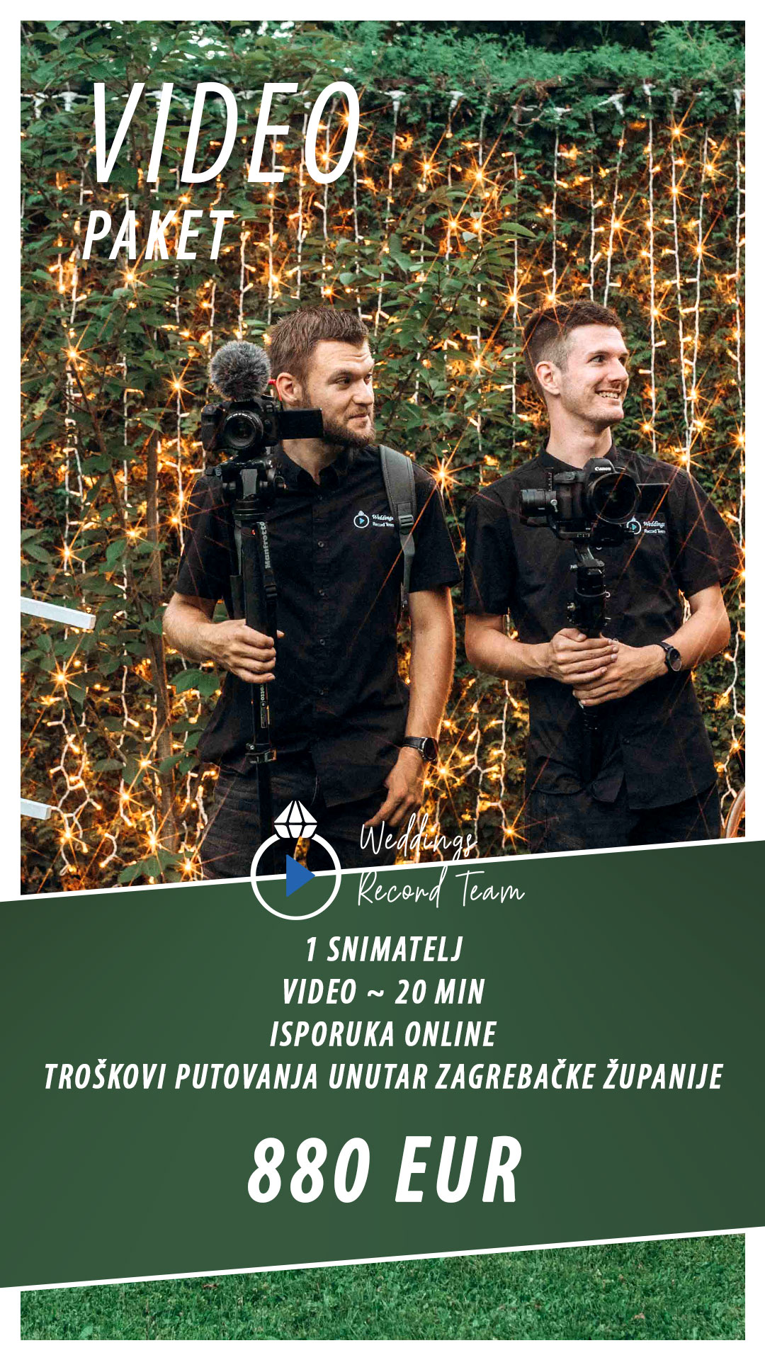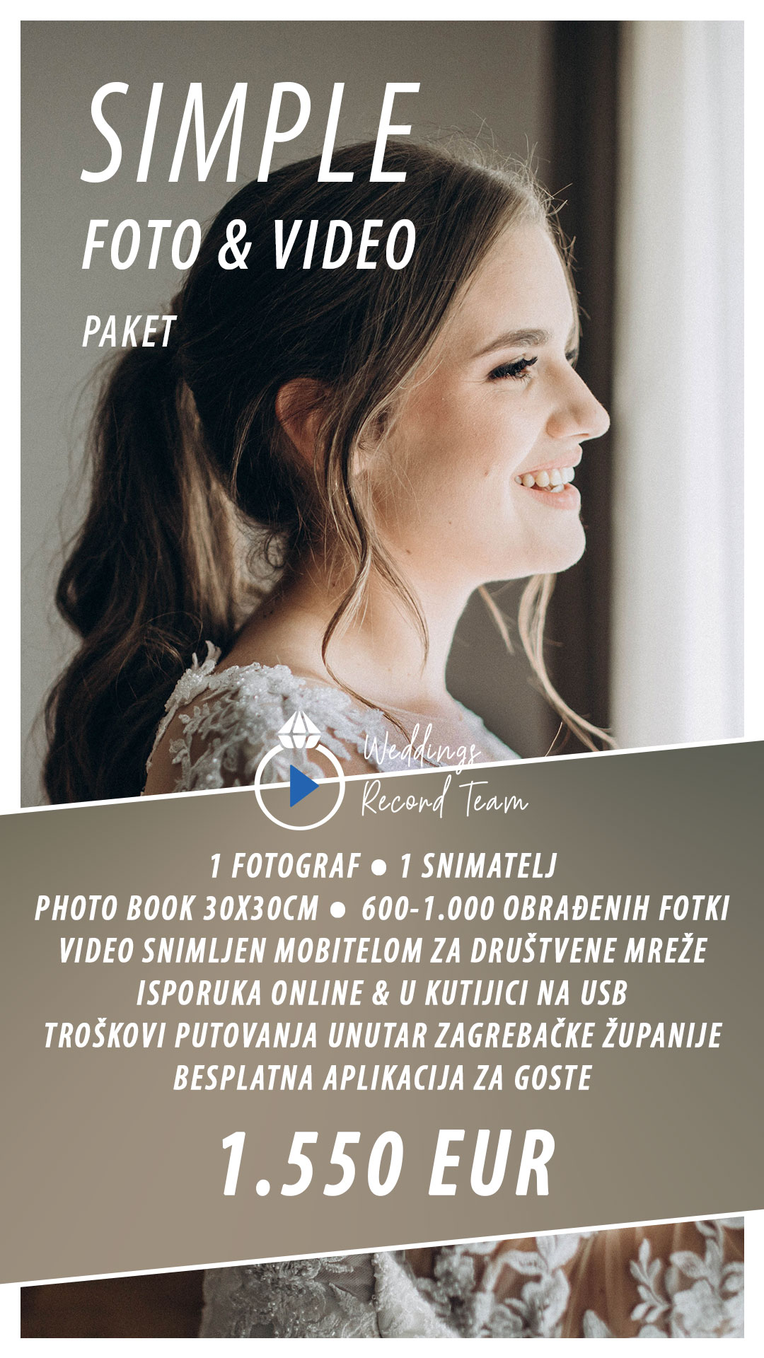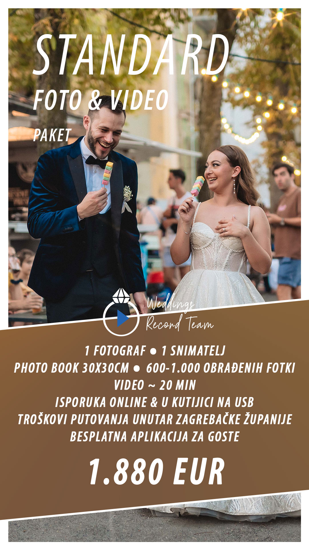 U svakom paketu možete birati glazbu koju želite u videu, te pripremu za photo book. Snimanje dronom je dodatno a uključuje snimanje kod mladenca, mladenke, crkvu, izlazak iz crkve, photo session, te kolonu i restoran ako to vremenski uvjeti dopuštaju.